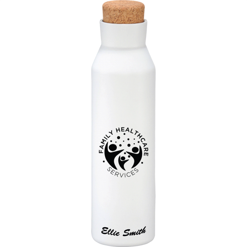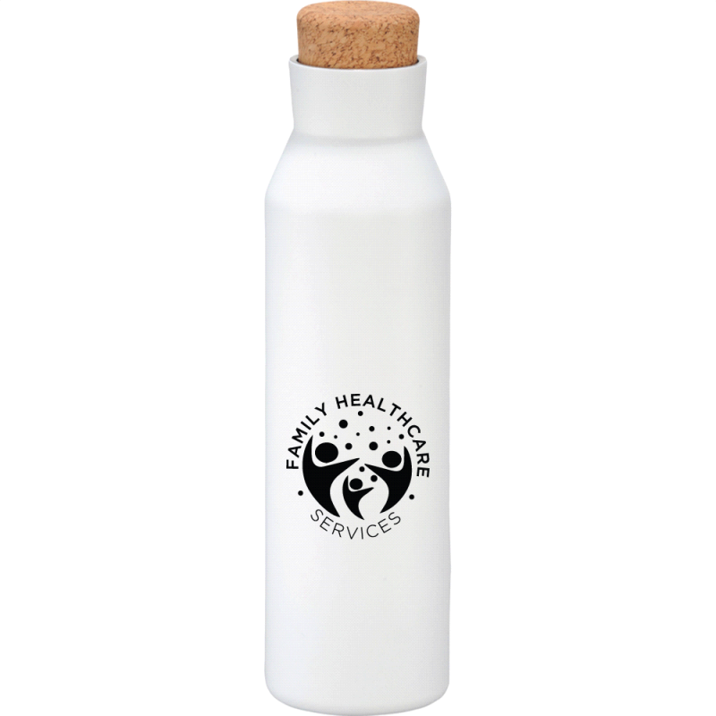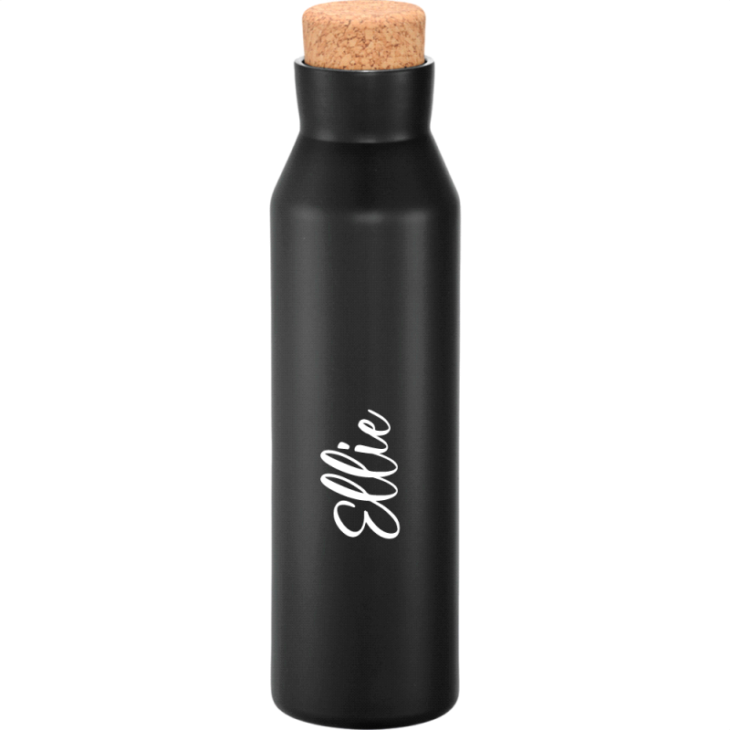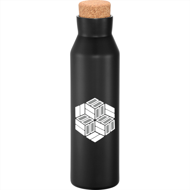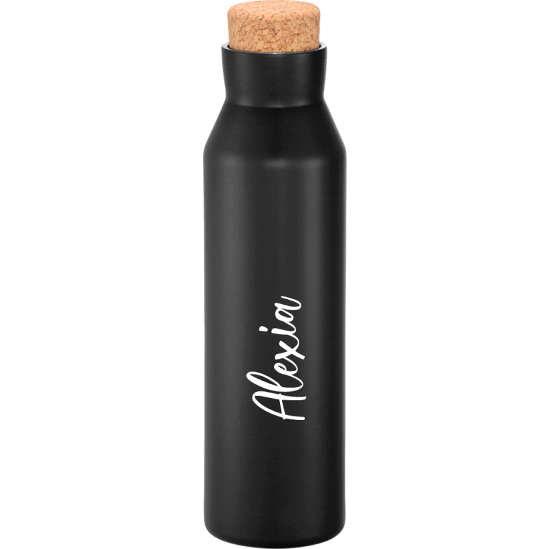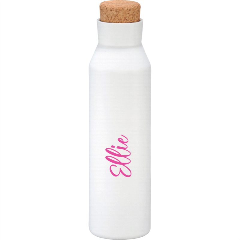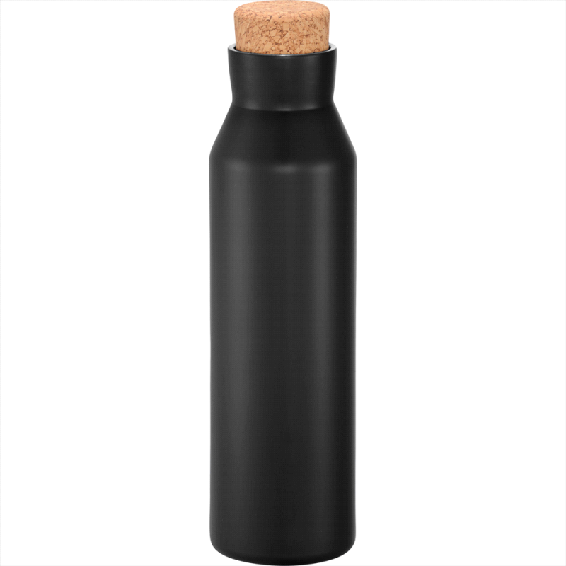 Deluxe 600ml stainless steel drink bottle that is vacuum insulated with a sleek design and a smart painted finish. It is BPA-free and features a secure stainless-steel screw-on lid which features a white polypropylene trim. It can be presented in a kraft gift box. The bottle is not dishwasher safe, and handwashing is recommended.