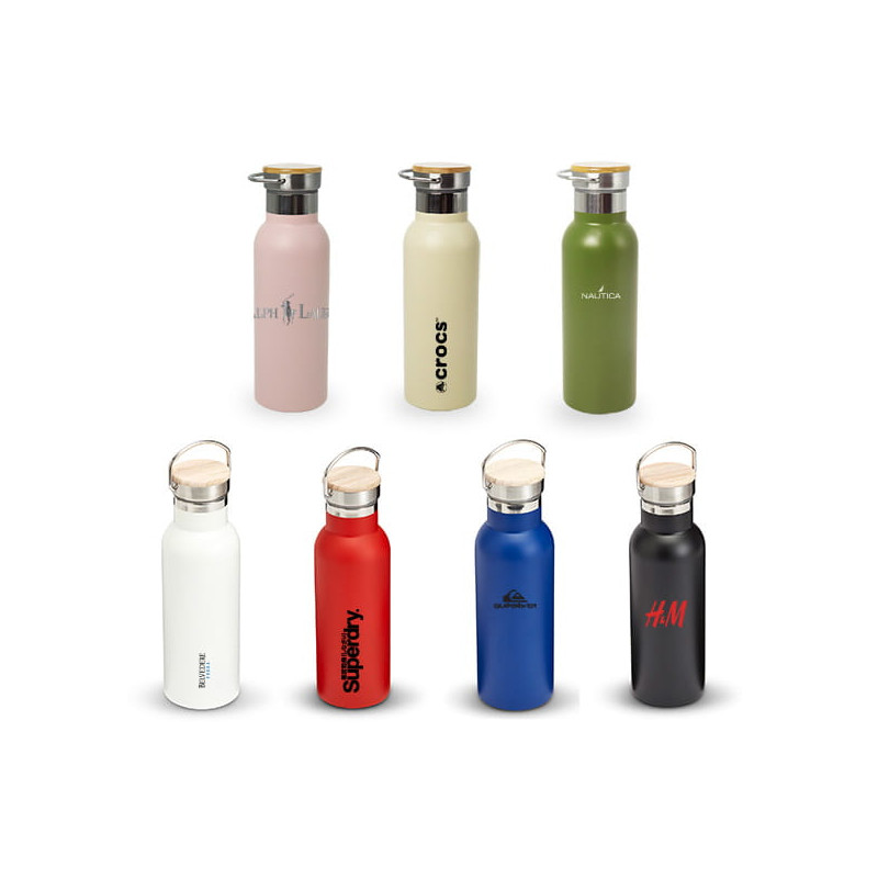 Deluxe 600ml stainless steel drink bottle that is vacuum insulated with a sleek design and a smart painted finish. It is BPA-free and features a secure stainless-steel screw-on lid which features a white polypropylene trim. It can be presented in a kraft gift box. The bottle is not dishwasher safe, and handwashing is recommended.