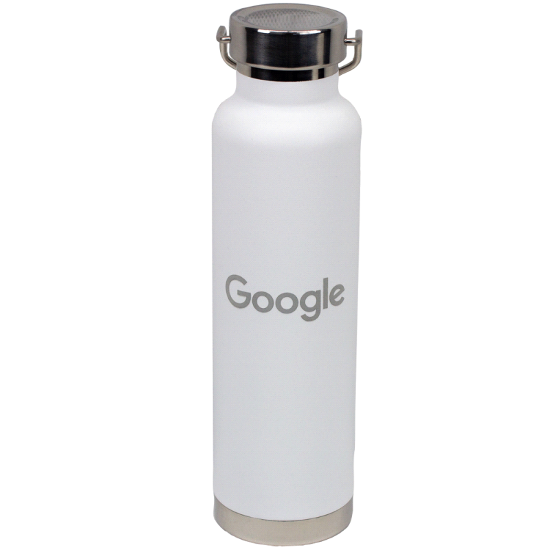 Fashion-inspired stainless steel 750ml bottle with a gloss finish. It has a screw-on lid with a black ribbon handle. Tornado is BPA-free. The bottle laser engraves to a shiny stainless-steel finish. This product is not dishwasher safe, and handwashing is recommended.