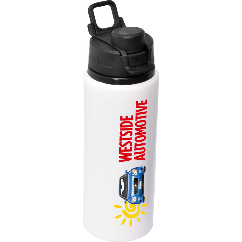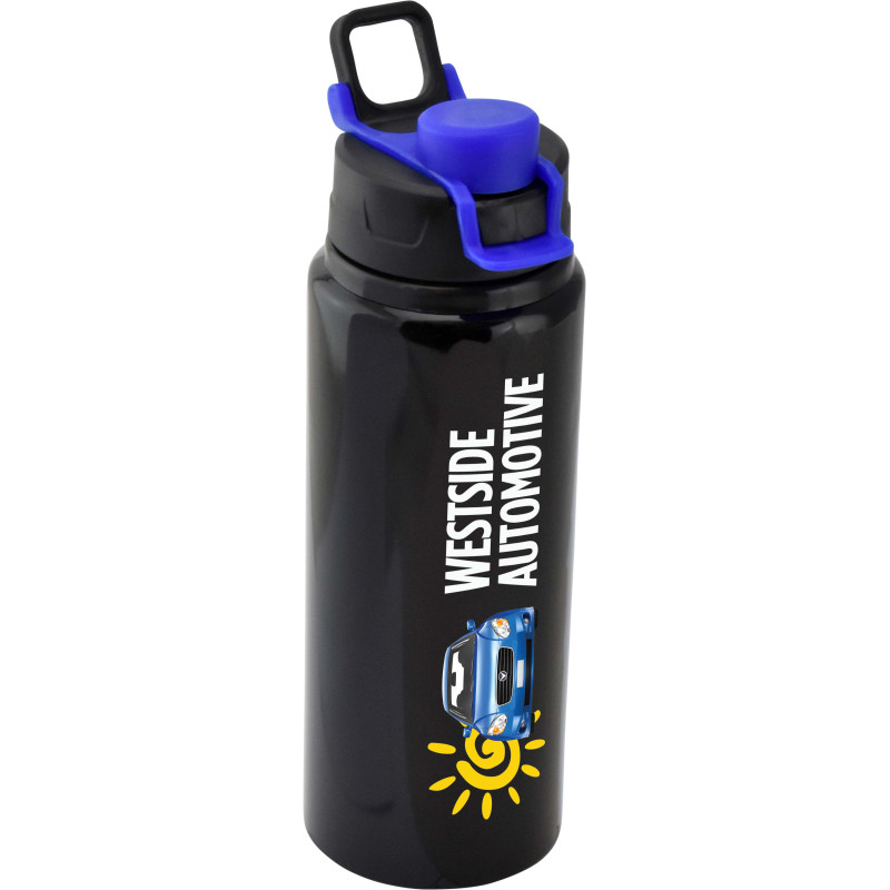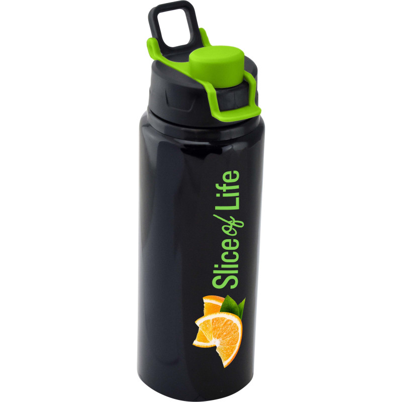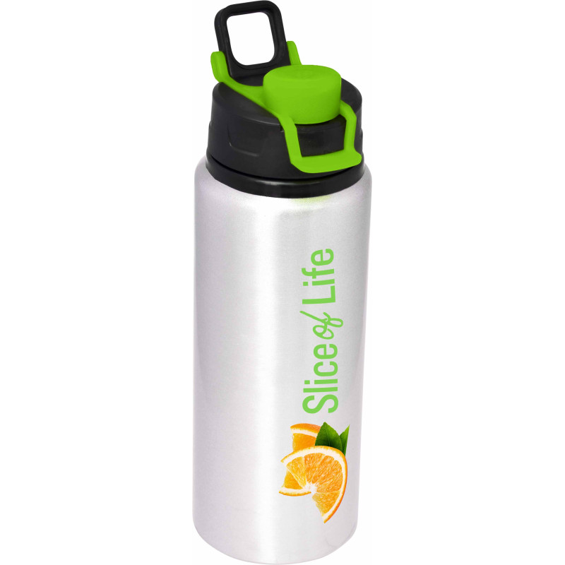 Vibrant BPA-free 750ml aluminium drink bottle which has a secure screw on lid with a leakproof snap cap and a carry handle. This product is not dishwasher safe and handwashing is recommended.