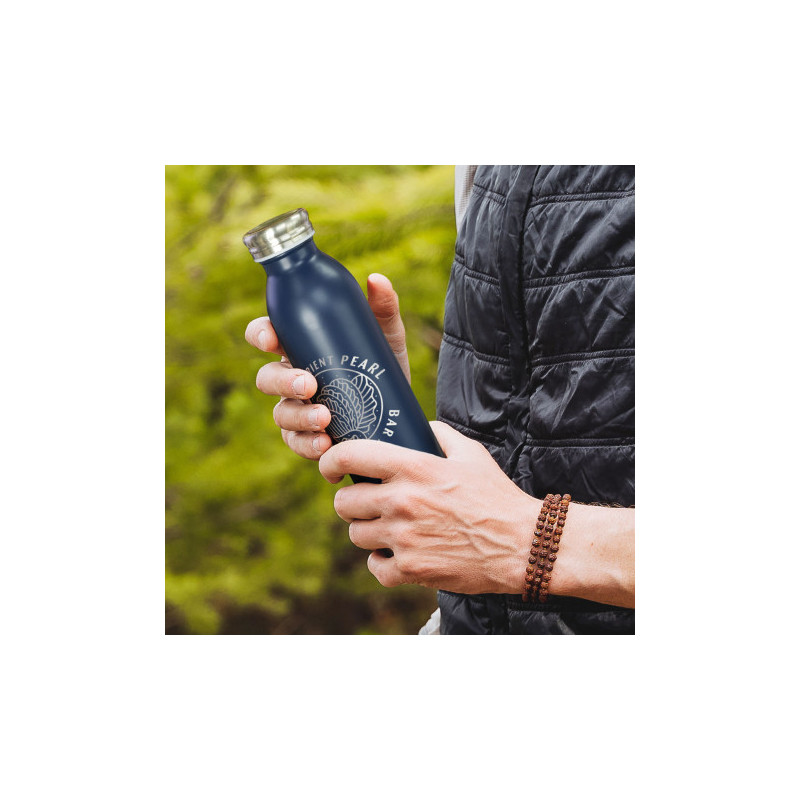 Modern 800ml single-wall, stainless steel drink bottle which has an extremely durable powder coated matt finish with a secure screw on natural bamboo lid. Pasadena offers a carry lid for easy transportation, it is BPA-free and laser engraves to a shiny steel finish. Bamboo is a natural material which produces unavoidable variances in the grain pattern,...