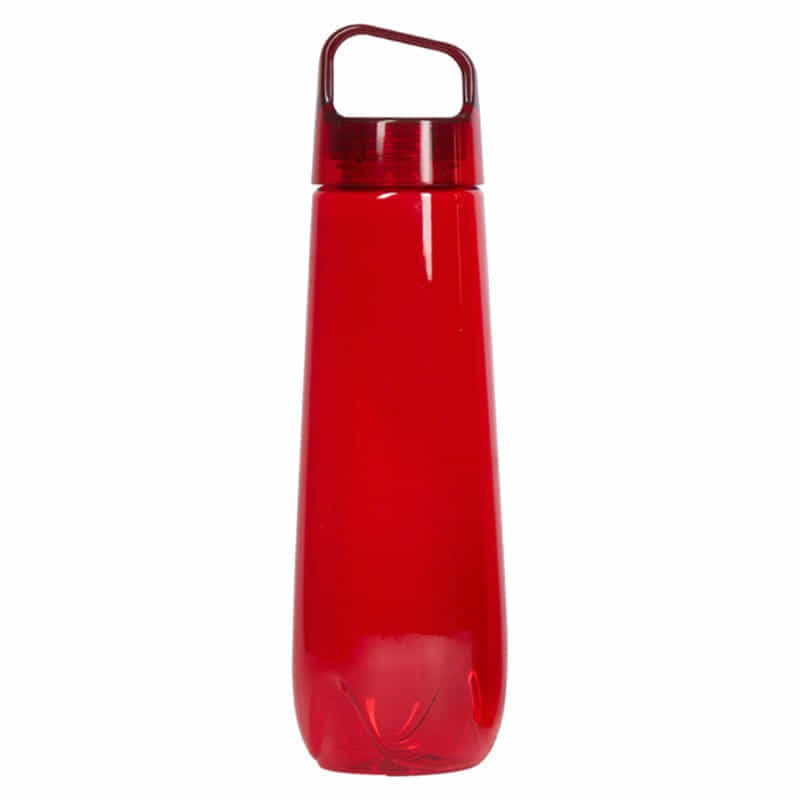 Affordable 700ml translucent drink bottle that is manufactured from co-polyester, which is odour-resistant and BPA-free. It has a secure screw on lid with a carry handle and can be presented in an optional black gift box. This product is not dishwasher safe and handwashing is recommended.
