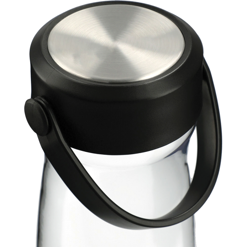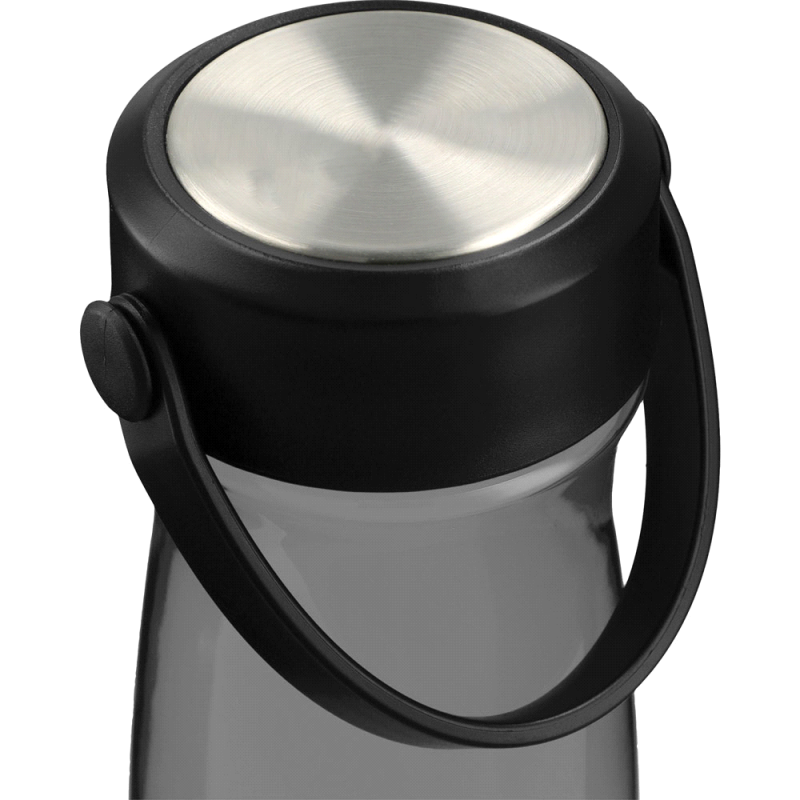 Affordable 700ml translucent drink bottle that is manufactured from co-polyester, which is odour-resistant and BPA-free. It has a secure screw on lid with a carry handle and can be presented in an optional black gift box. This product is not dishwasher safe and handwashing is recommended.