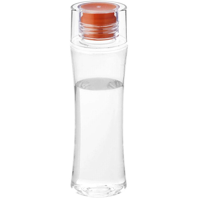 740ml plastic water bottle with screw on lid, manufactured from Tritan material, BPA free, tear drop shape with transparent tone on tone design, screw on lid with handle, not microwave safe, hand wash only. Not intended for use with hot liquids or carbonated beverages, do not subject to high temperatures for long period of time, do not boil or fill bottle...