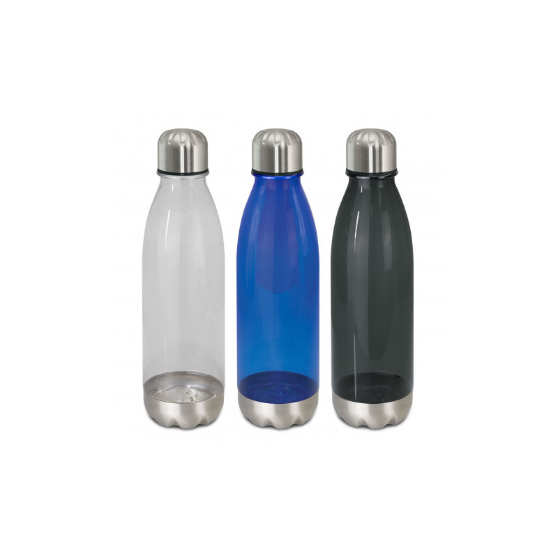 A 700ml AS plastic water bottle with stainless steel cap and base. Perfect and stylish for carrying cold drinks on the go. All Bottles are 100% BPA Free, hand wash only, and not for use in freezer.