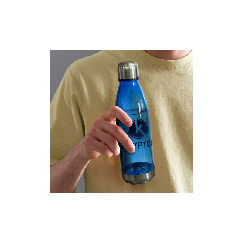 A 600ml Tritan Plastic water bottle with stainless steel cap and base. Perfect and stylish for carrying cold drinks on the go. Constructed of Tritan plastic and stainless steel makes these bottles built to last! All Bottles are 100% BPA Free, hand wash only, and not for use in freezer.