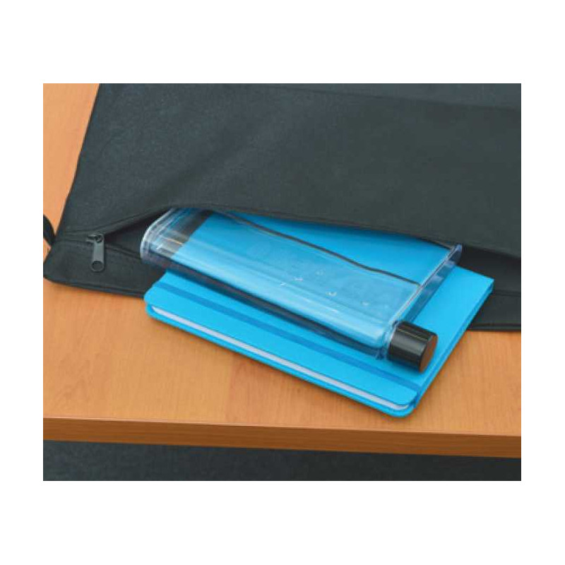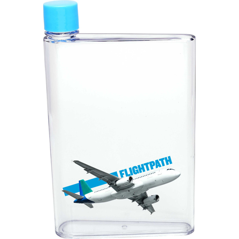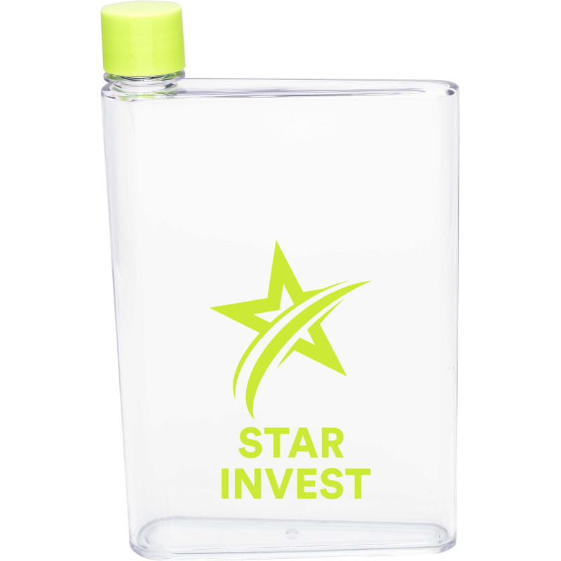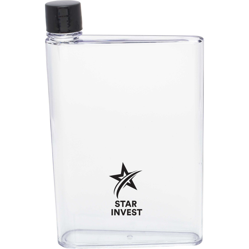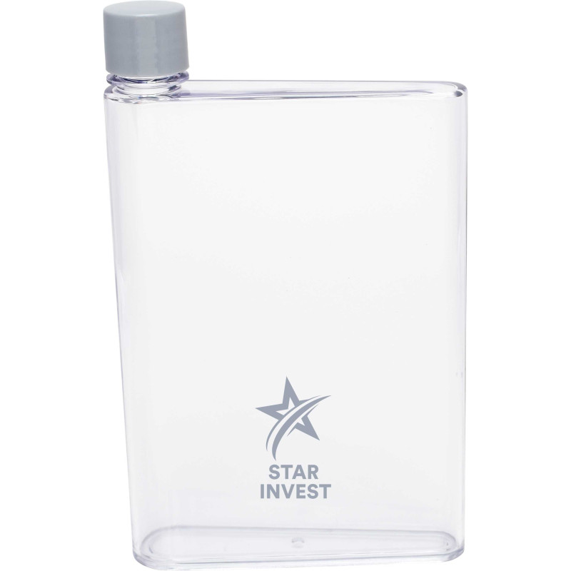 Futuristic 400ml notebook-shaped water bottle which bevelled so it is easy to carry. It easily slides into bags alongside books, laptops and folders. It has a secure screw on lid and a handy finger grip with a soft-touch silicone liner. It is manufactured from AS plastic with a polypropylene lid. This product is not dishwasher safe and handwashing_x000D_...