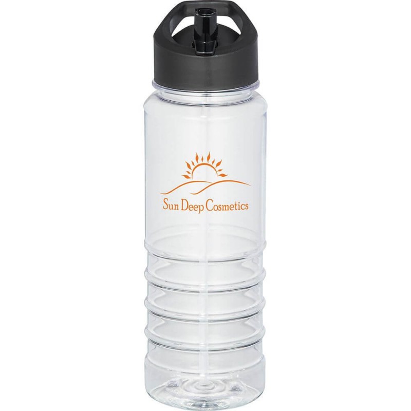 Affordable 700ml translucent drink bottle that is manufactured from co-polyester, which is odour-resistant and BPA-free. It has a secure screw on lid with a carry handle and can be presented in an optional black gift box. This product is not dishwasher safe and handwashing is recommended.