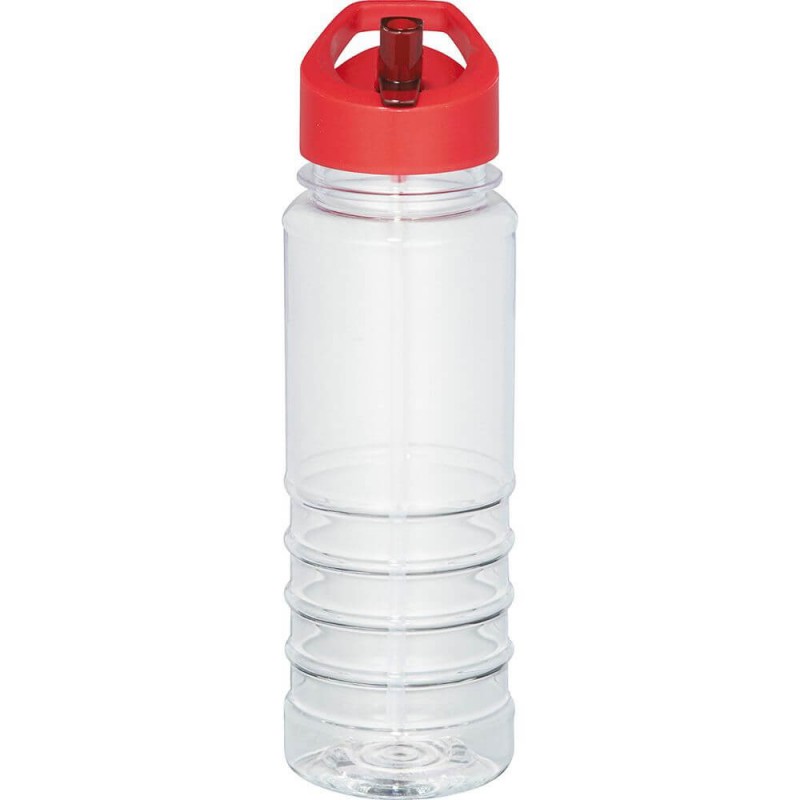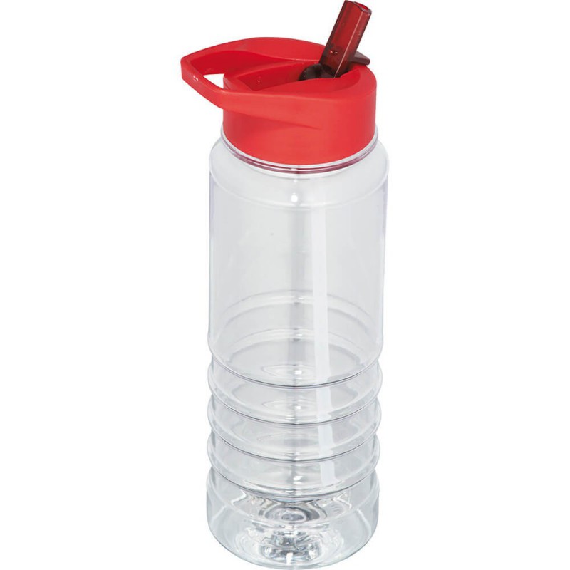 740ml transparent plastic drink bottle made of Tritan material which is strong tough and BPA free, a secure screw on lid with carry handle and flip out drinking nozzle with straw, it is not dishwasher safe and handwashing is recommended. It is not intended for use with hot liquids or carbonated beverages, do not subject to high temperatures for long...