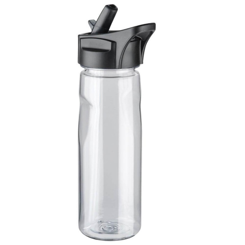 740ml transparent plastic drink bottle made of Tritan material which is strong tough and BPA free, a secure screw on lid with carry handle and flip out drinking nozzle with straw, it is not dishwasher safe and handwashing is recommended. It is not intended for use with hot liquids or carbonated beverages, do not subject to high temperatures for long...