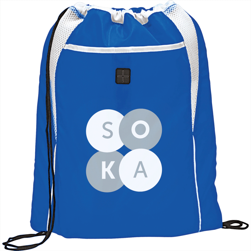 Premium drawstring backpack with a large zippered front pocket. It is manufactured from 220gsm woven polyester and has reinforced eyelets at the back of the backpack for added strength. Other features of the Royale include mesh detailing on the side of the bag, internal pockets and thick cords for sturdy carrying.