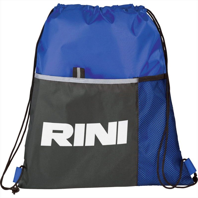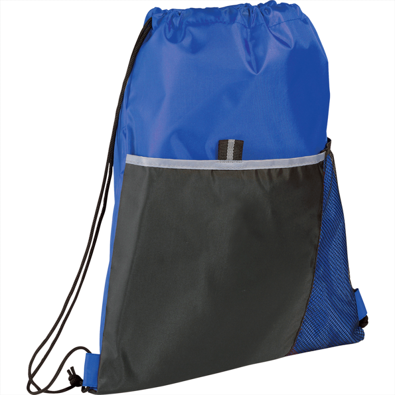 Premium drawstring backpack with a large zippered front pocket. It is manufactured from 220gsm woven polyester and has reinforced eyelets at the back of the backpack for added strength. Other features of the Royale include mesh detailing on the side of the bag, internal pockets and thick cords for sturdy carrying.