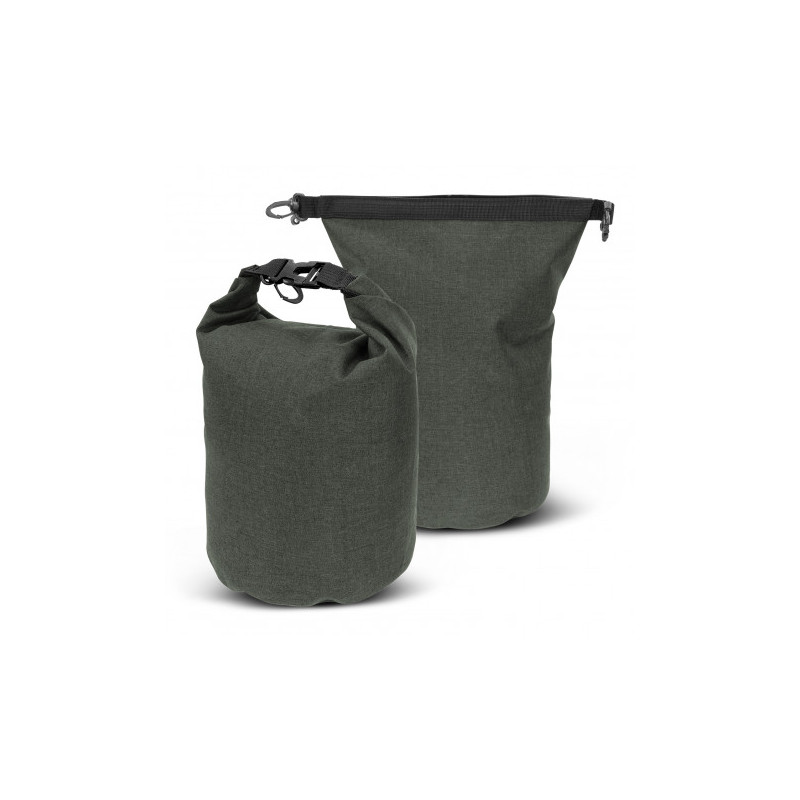 Waterproof outdoor bag. Roll-top closure with plastic buckle to keep your valuables dry and safe on outdoor activities. Easily snaps on a bag or belt.