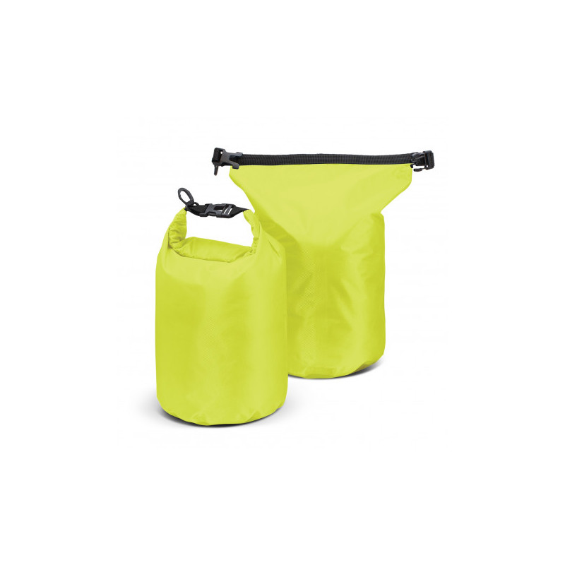 2 Litre capacity PVC waterproof dry bag. Buckle closure that forms a handle when the bag is sealed. Designed to keep electronics, valuables and snacks dry on outings, hikes, boat trips and visits to the beach. 250D reinforced PVC