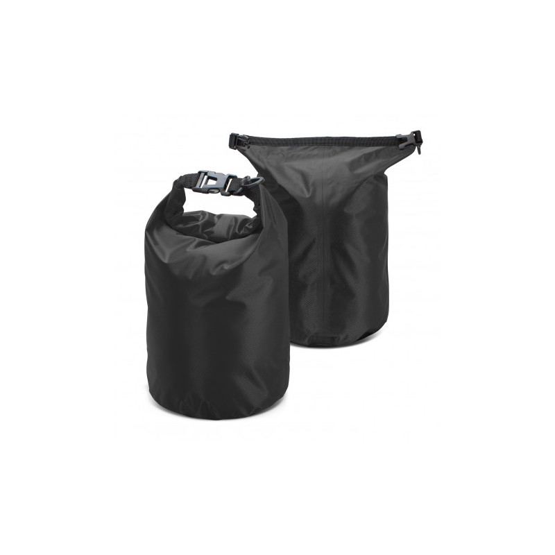 Waterproof outdoor bag. Roll-top closure with plastic buckle to keep your valuables dry and safe on outdoor activities. Easily snaps on a bag or belt.
