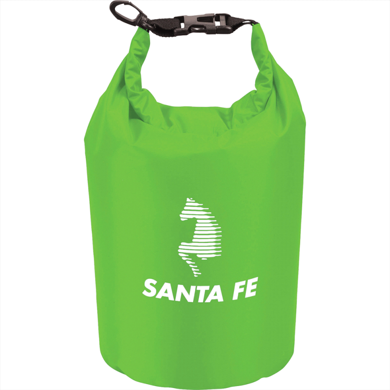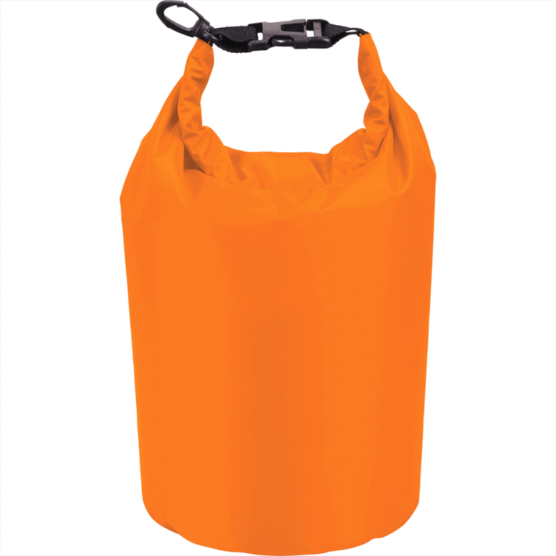 2 Litre capacity PVC waterproof dry bag. Buckle closure that forms a handle when the bag is sealed. Designed to keep electronics, valuables and snacks dry on outings, hikes, boat trips and visits to the beach. 250D reinforced PVC