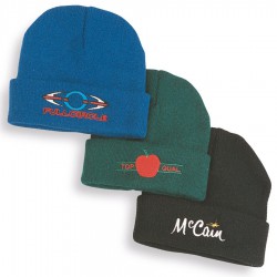 Warm knitted acrylic beanie with a roll up cuff. It is available in one size, which will fit most youth.