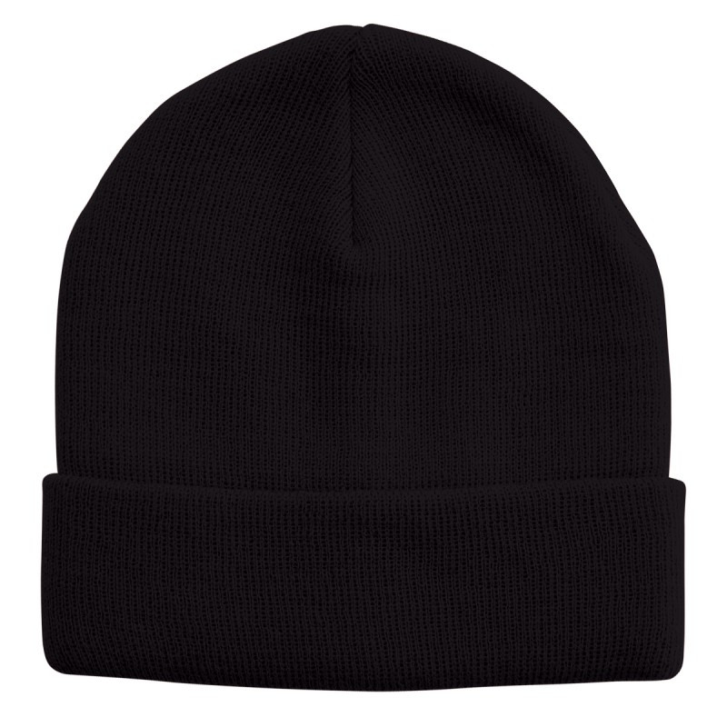 Warm close-fitting beanie knitted from acrylic fibre. Available in one size which will fit most people.