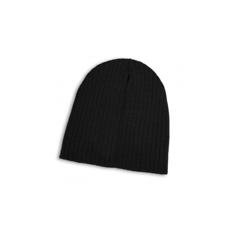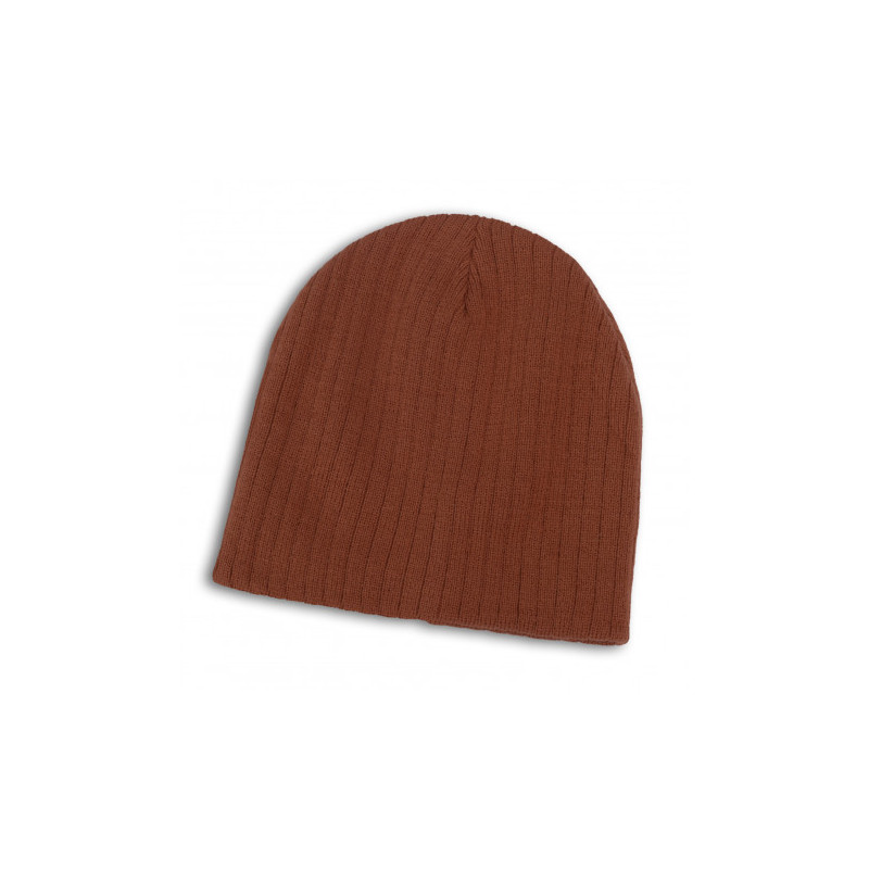 Warm close-fitting beanie knitted from acrylic fibre. Available in one size which will fit most people.