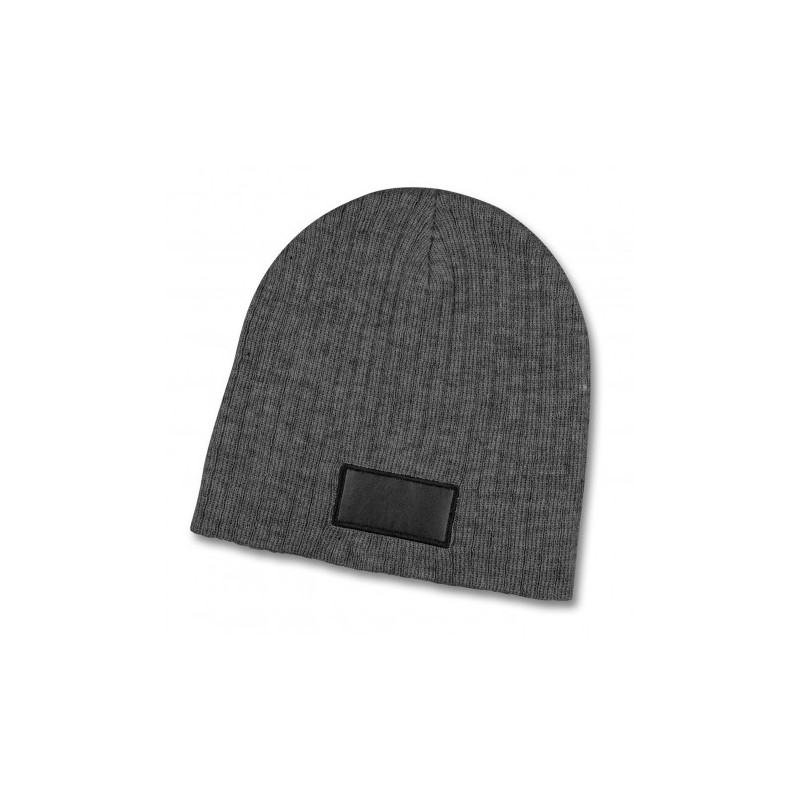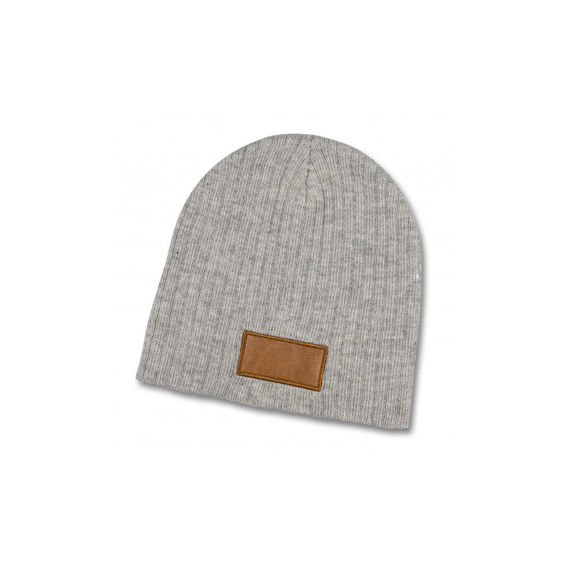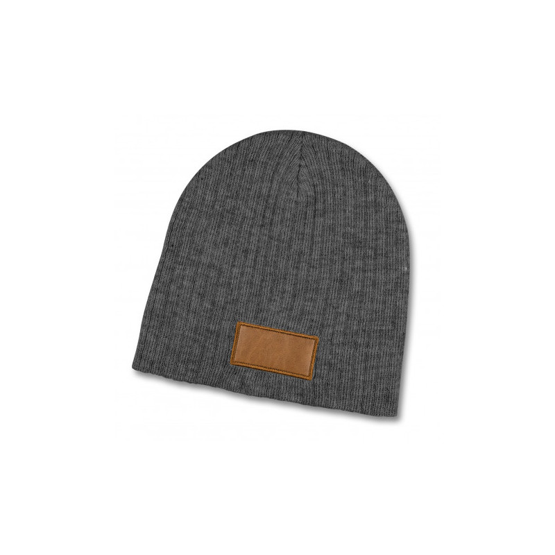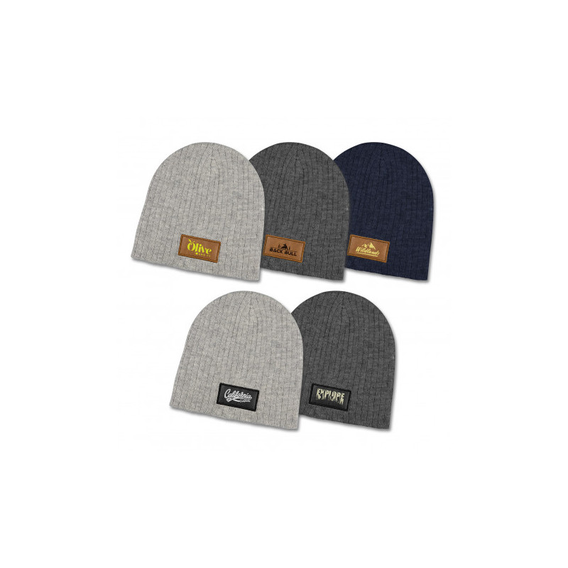 Warm knitted acrylic beanie with a roll up cuff. It has a matching leather look patch that provides a very affordable branding option. It is available in one size which will fit most people.