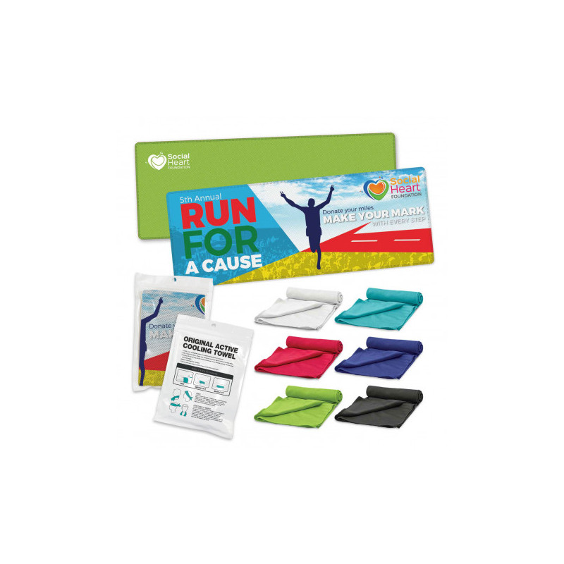 This Very Kool Cooling towel is ideal for any hot day for towelling off after a Yoga or Pilates Class and even useful for a face mask option during COVID-19, branded or unbranded. The Very Kool Cooling towel is a hyper-evaporative material thats the latest in cooling innovation; this towel retains water while remaining dry to the touch to provide cooling...