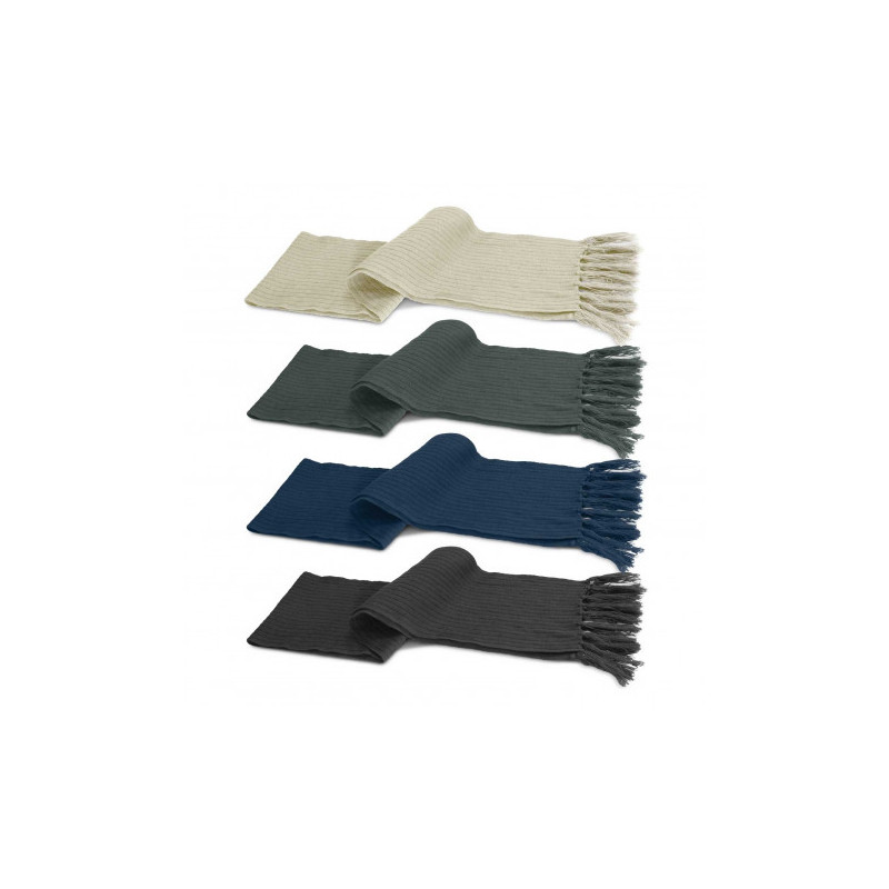 Stylish and warm the Cable Knit Scarf is smart enough for business wear or outdoor corporate functions. Acrylic knit with cable knit row|Scarf pulls through end loop to create neck wrap