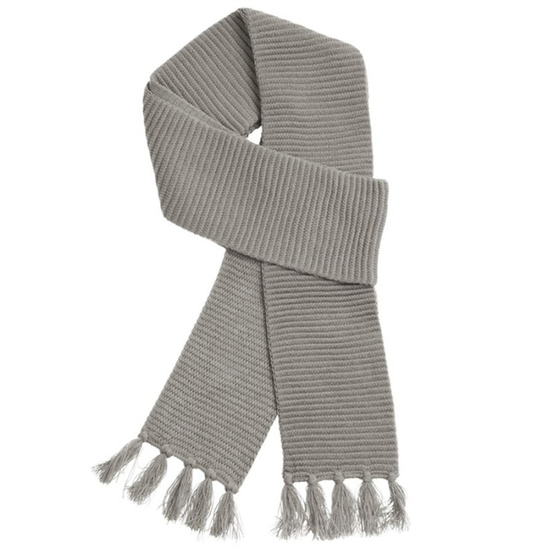 Warm knitted acrylic scarf with trendy stripes and tassles.