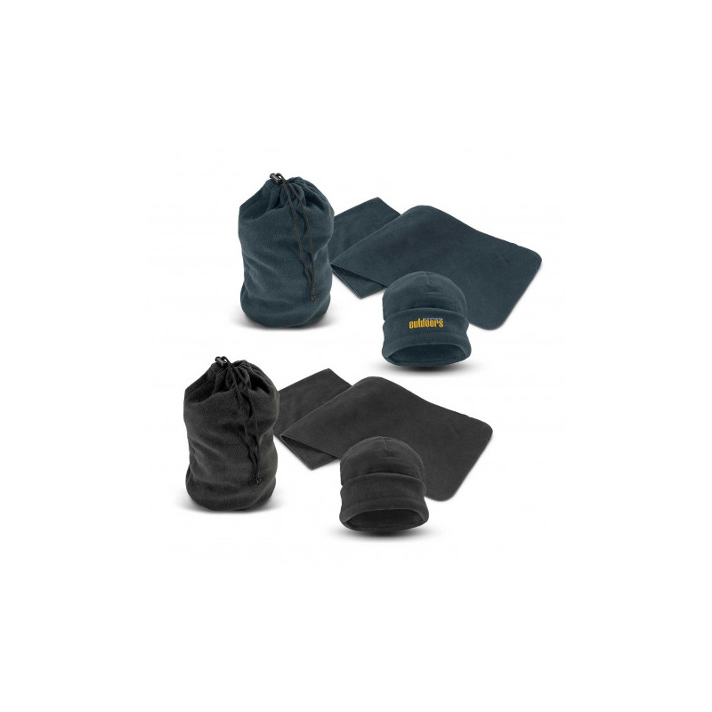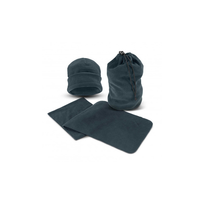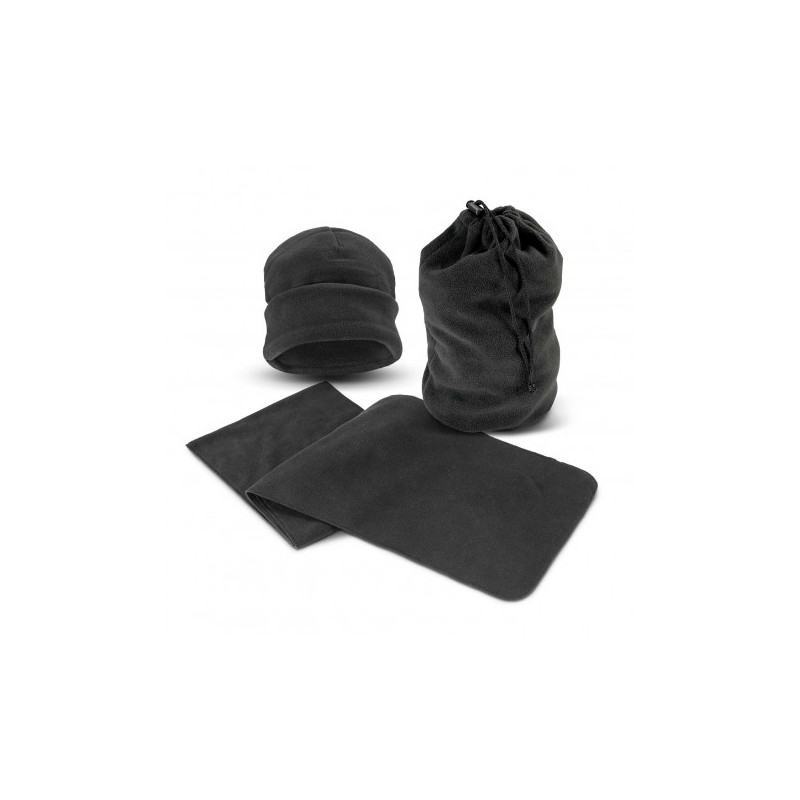 Superb scarf and gloves set which is manufactured from warm, non-pilling polar fleece and is presented in a matching drawstring bag. The gloves are available unbranded in two convenient sizes and can be clipped together when not in use.