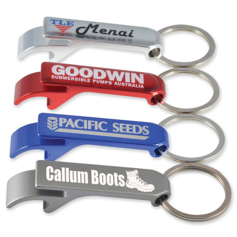 A popular handy bottle opener made from anodised aluminum, in many colours and come custom engraved, a great affordable promotional item for companies and clubs of all types.