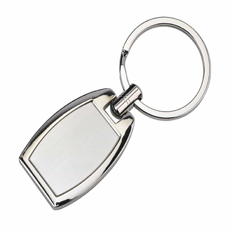 Matt silver rectangular keyring. Laser engraving recommended. Printing will fade over time.