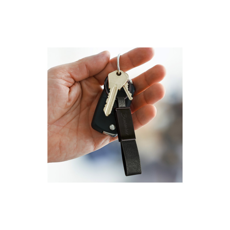 Smart key organizer key ring, 100% real leather compact key holder, secure locking mechanism, pocket key chain up to 10 keys and tools, reduce the size of your key ring and eliminate its noise by simply eliminating the movement of your keys, can be laser engraved only on metal part and pad printing on leather. Presented in a black gift box.