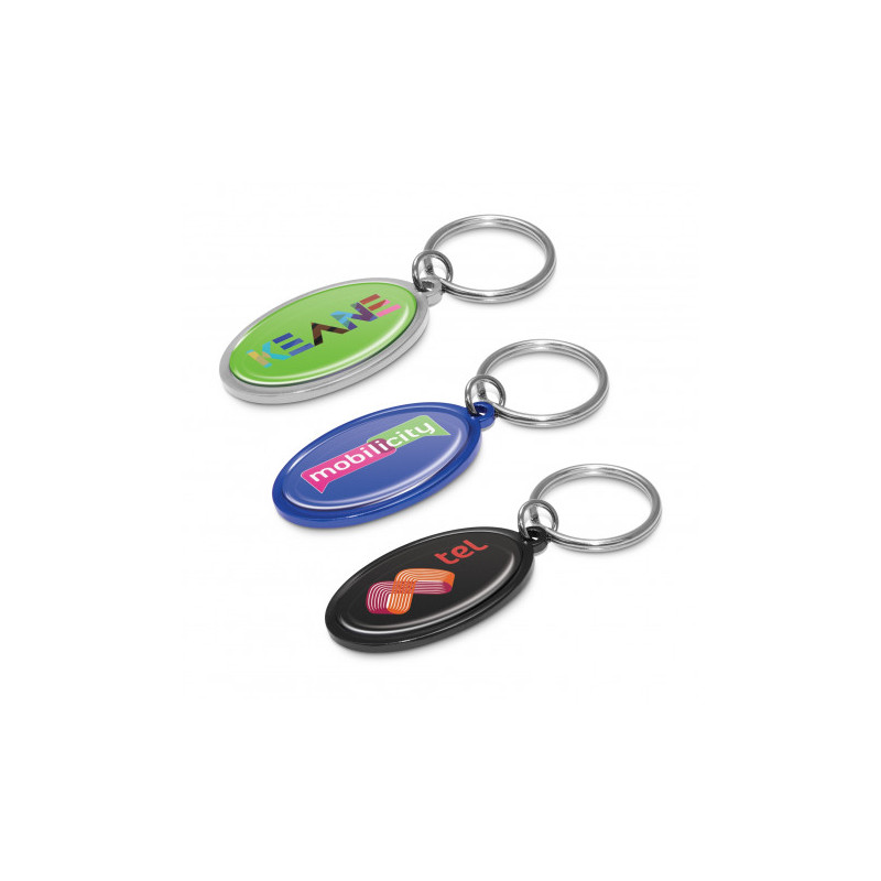No need to search for a $1 coin to be able to use a shopping trolley! This keyring holds a brandable token the same size as a $1 coin. Metal.