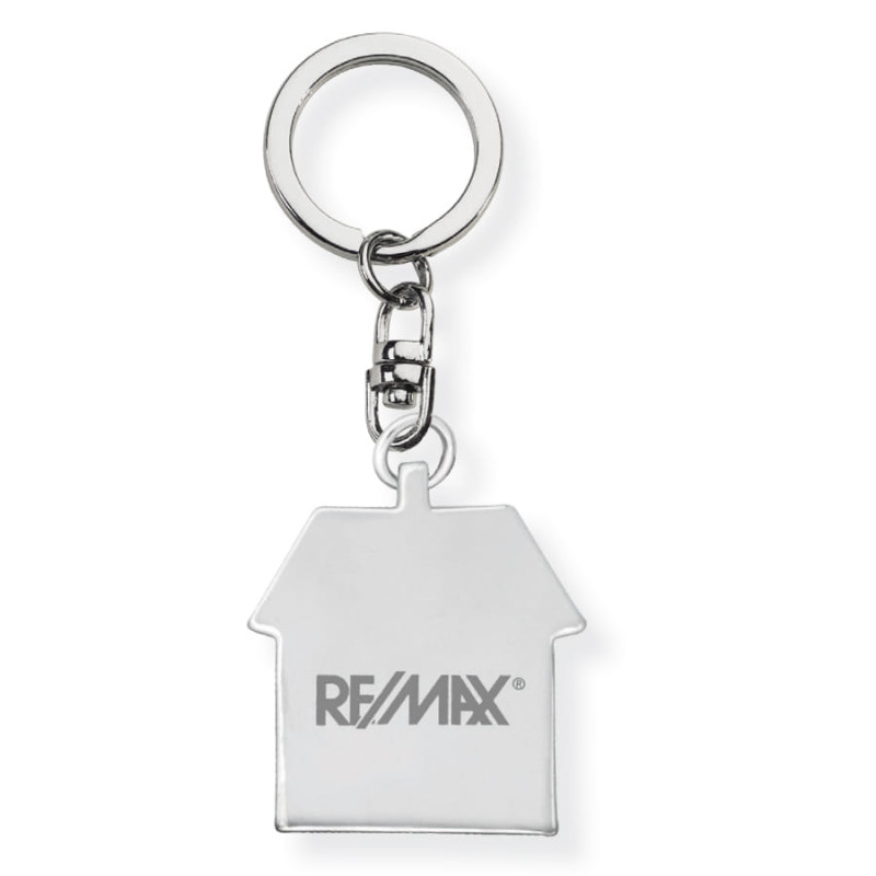 A house shape triple spinner keychain made of chromed zinc alloy, unique house design rotating inside to be fun, a fantastic promotional item for house industry.