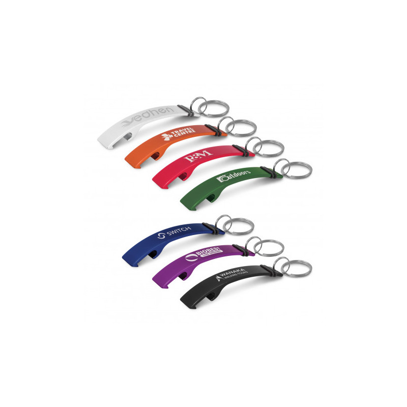 A popular handy bottle opener made from anodised aluminum, in many colours and come custom engraved, a great affordable promotional item for companies and clubs of all types.