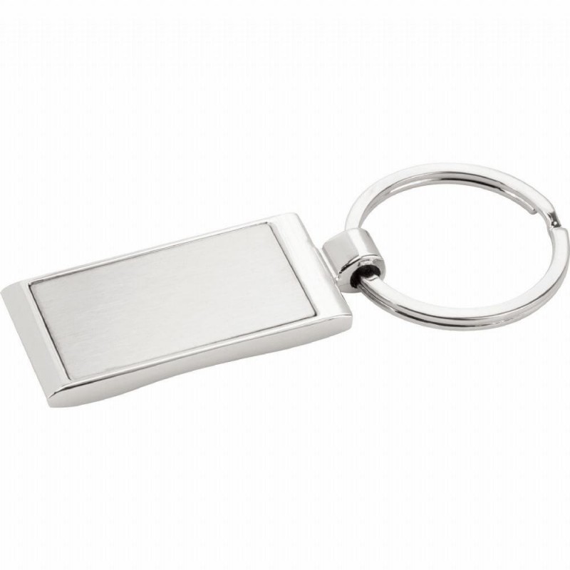 Matt silver rectangular keyring. Laser engraving recommended. Printing will fade over time.