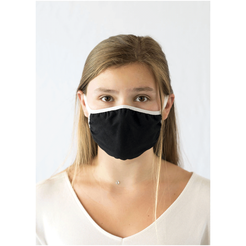 Premium face mask which can be reused by hand washing it in warm water. This deluxe mask features a nose wire to provide a more secure, comfortable fit and has matching black ear loops with adjustable silicone toggles to ensure one size will fit most people. The mask has darts stitched into the front panel to create more structure, keeping the mask’s...