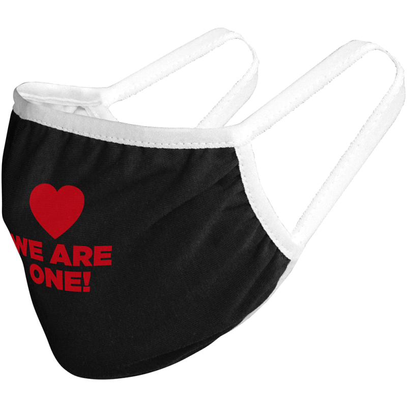 Sublimated polyester, cotton and spandex face mask. Washable and reusable. Each mask features 3 layers of soft comfortable fabric. 2 layers of black cotton and spandex material comprising 64% cotton and 5% spandex then an outer layer of white polyester which can be custom decorated with almost any design. Mask features a squeeze tight, secure nose clip...