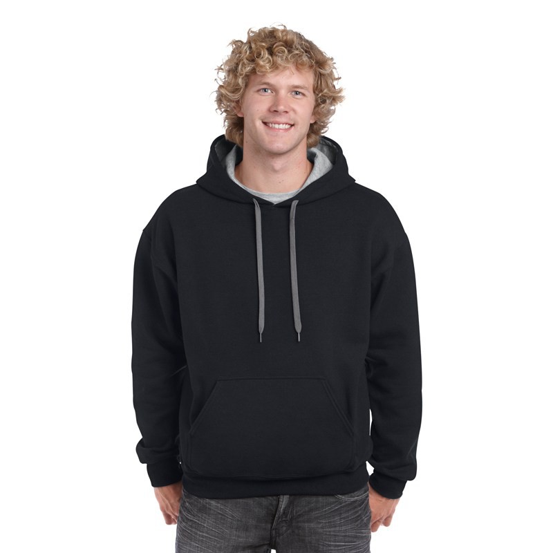 50% Cotton / 50% Polyester preshrunk yarn, 279 g/m², Air jet yarn = softer feel and no pilling, Contasting jersey lined hood, Dark grey flat drawcord and twill tape, Pouch pocket, Double needle cuffs, 1 x 1 athletic rib with spandex, Quarter-turned to eliminate centre crease