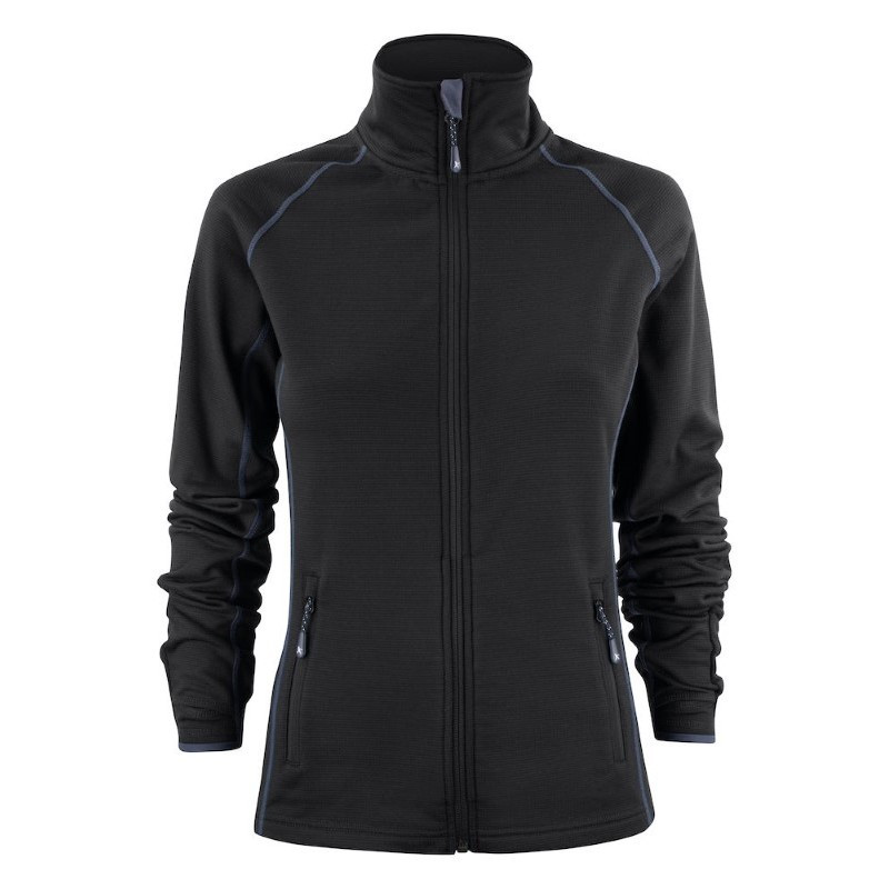 Matching full front zipper,Shaped for women with panel details at sides,Concealed front pockets with invisible zippers. Fabric: 100% Polyester Low Pill Micro Fleece,285 GSM.