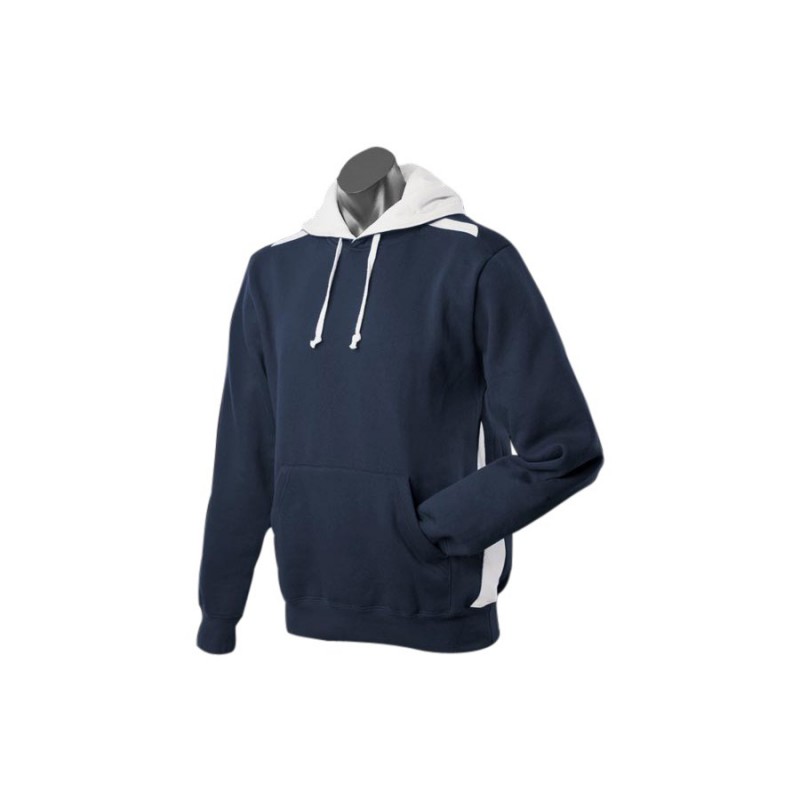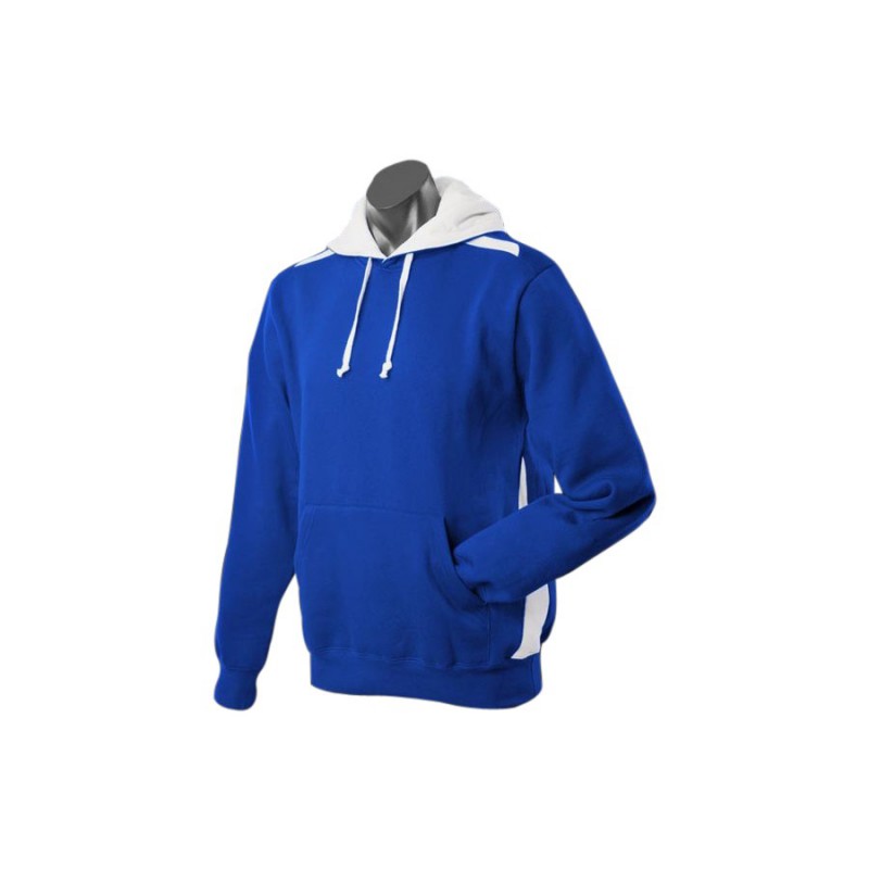 50% Cotton / 50% Polyester preshrunk yarn, 279 g/m², Air jet yarn = softer feel and no pilling, Contasting jersey lined hood, Dark grey flat drawcord and twill tape, Pouch pocket, Double needle cuffs, 1 x 1 athletic rib with spandex, Quarter-turned to eliminate centre crease