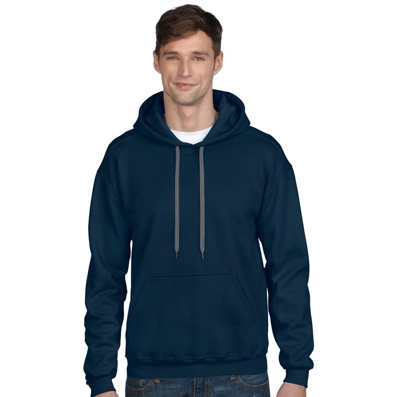 50% Cotton / 50% Polyester preshrunk yarn, 279 g/m², Air jet yarn = softer feel and no pilling, Contasting jersey lined hood, Dark grey flat drawcord and twill tape, Pouch pocket, Double needle cuffs, 1 x 1 athletic rib with spandex, Quarter-turned to eliminate centre crease