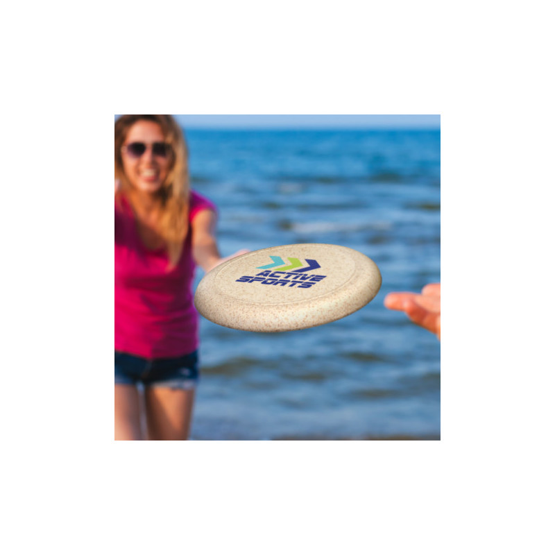 23cm recreational flying disc made from a blend of natural wheat straw fibre and polypropylene.