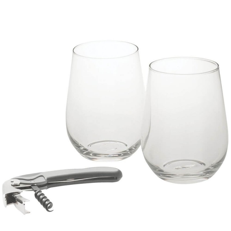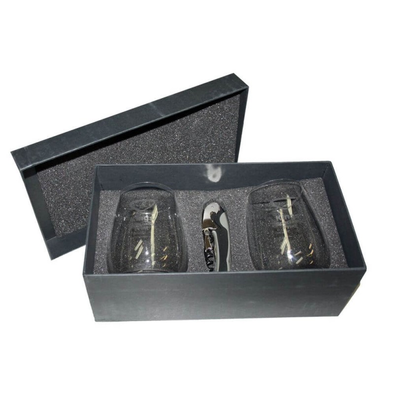 Two piece wine glass set with waiters friend. Supplied in a classy two part gift box with foam insert. 430ml capacity.