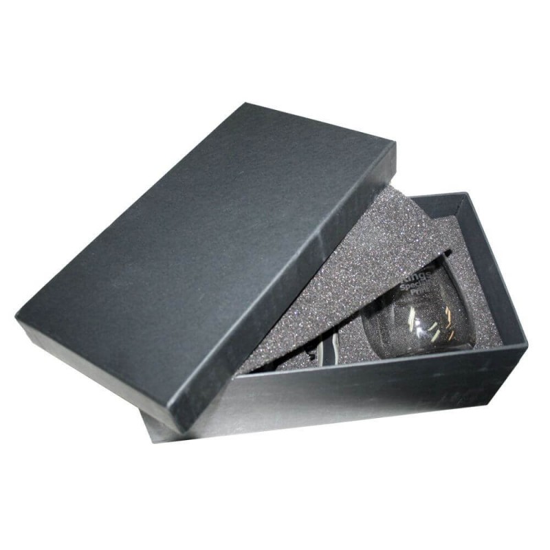 This set of four wine glasses comes beautifully boxed in a black two pieces gift box with foam insert.