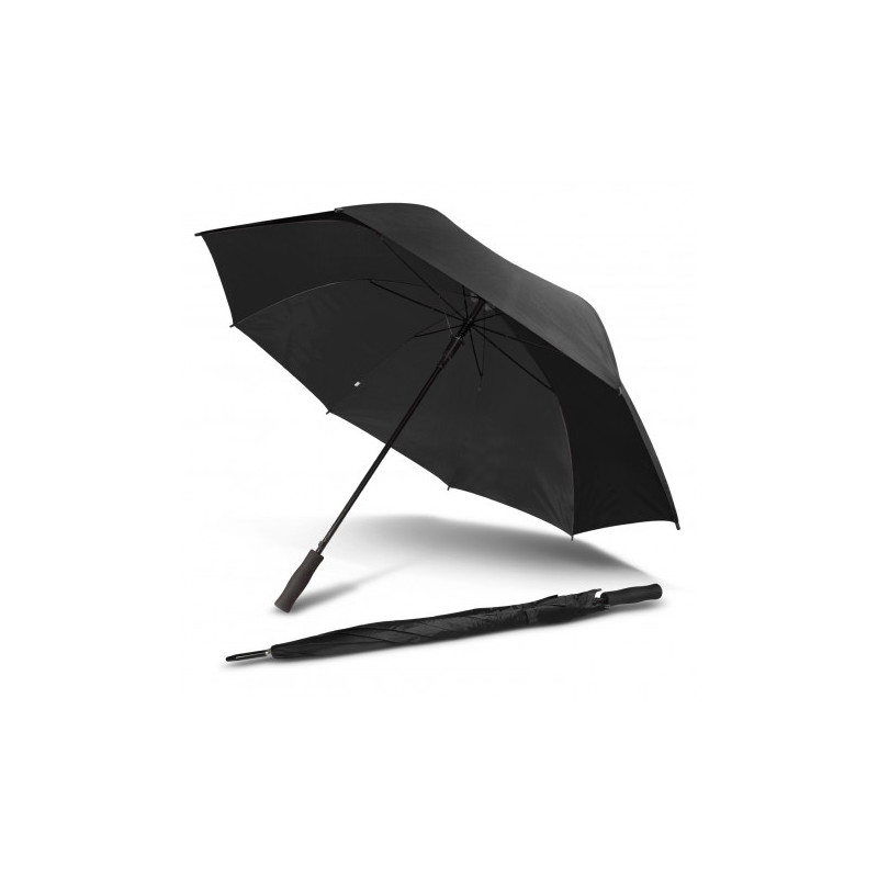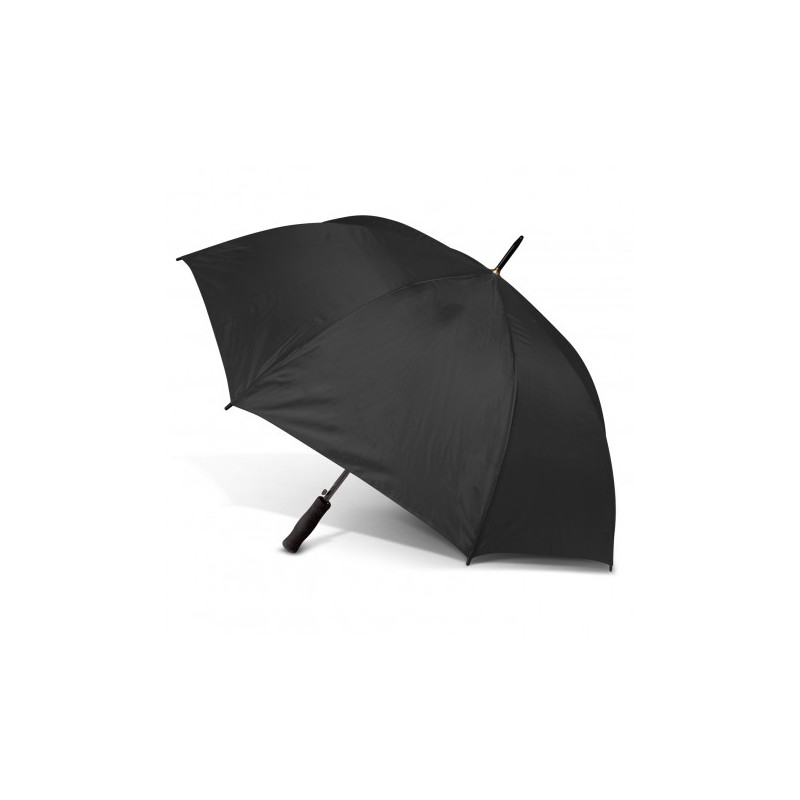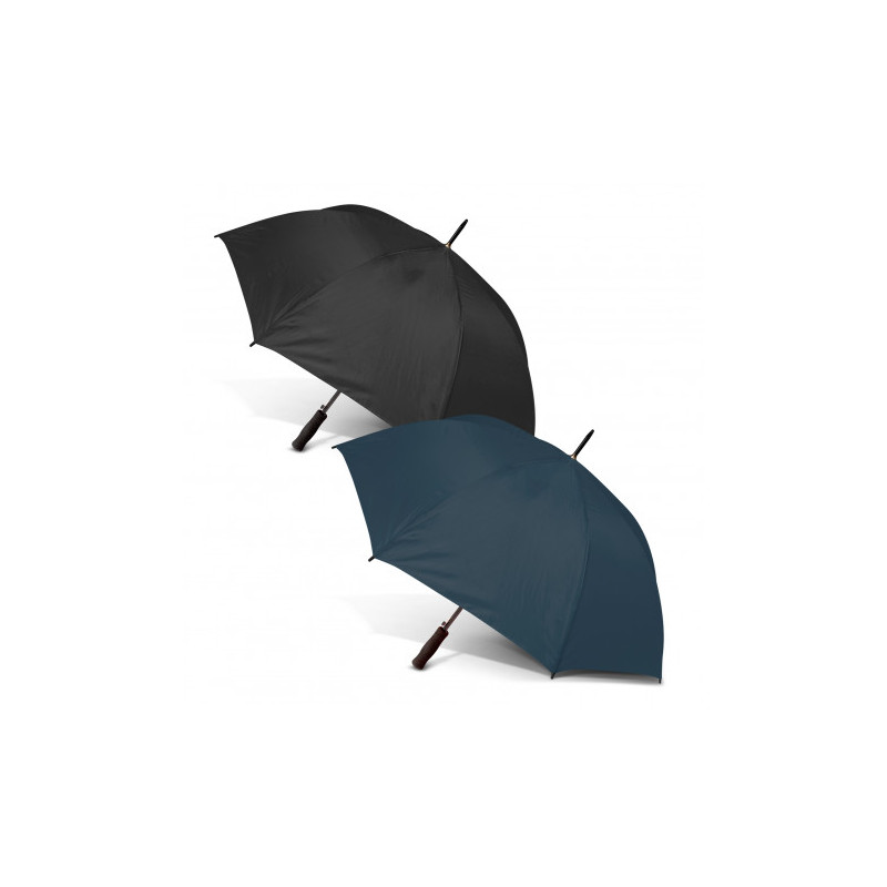 Premium eight-panel sports umbrella with automatic opening. The extra-large vented canopy is made from strong 190T pongee and has 76cm ribs. It has a windproof, wooden-look fibreglass frame and shaft with a wooden-look handle that has a plastic grip.