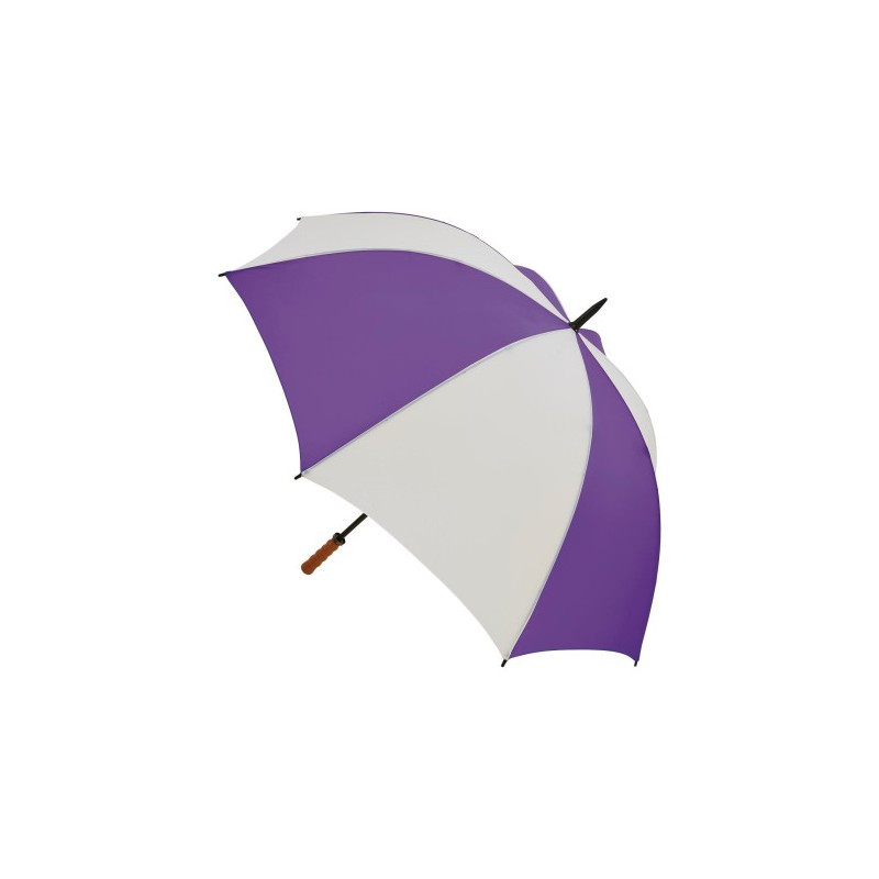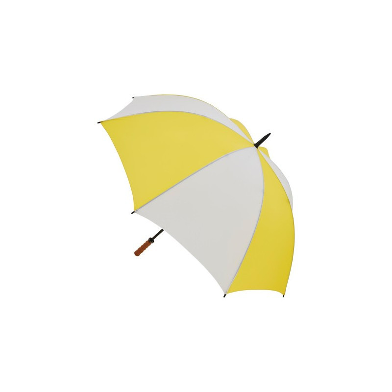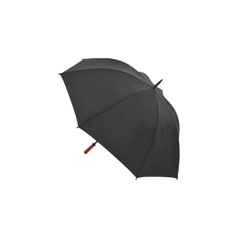 Premium eight-panel sports umbrella with automatic opening. The extra-large vented canopy is made from strong 190T pongee and has 76cm ribs. It has a windproof, wooden-look fibreglass frame and shaft with a wooden-look handle that has a plastic grip.