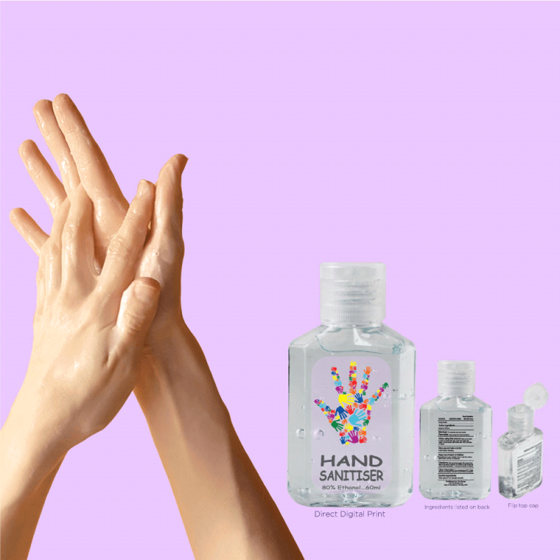 Get your clients logo out there and keep bacteria at bay with this clear, refreshing, lemon scented 60ml gel sanitiser. Wash your hands without water with a vitamin E and aloe vera rich formula in a compact promotional bottle.   View Material Safety Data Sheet  FDA approved*Kills 99.9 % of germs*Clear, refreshing, lightly fragranced gel...