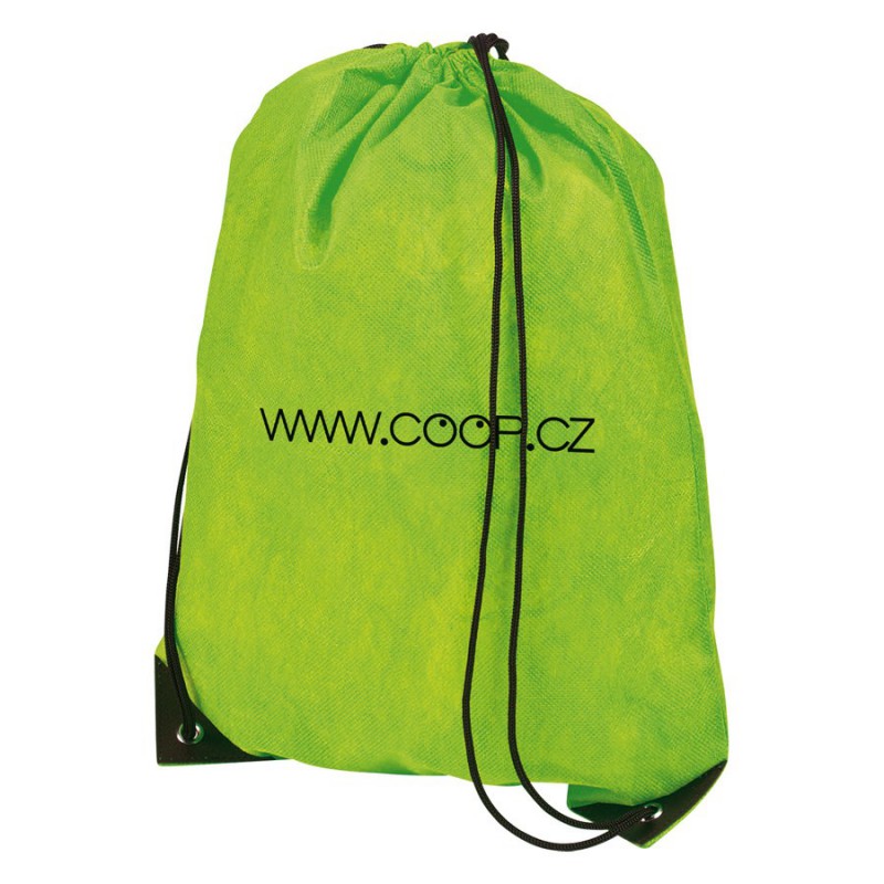 80gsm non woven drawstring bag, with metal eyelets and reinforced corners. Drawstring design for shoulder or backpack use.