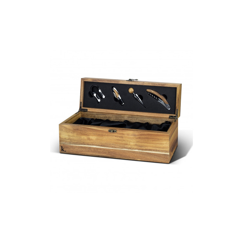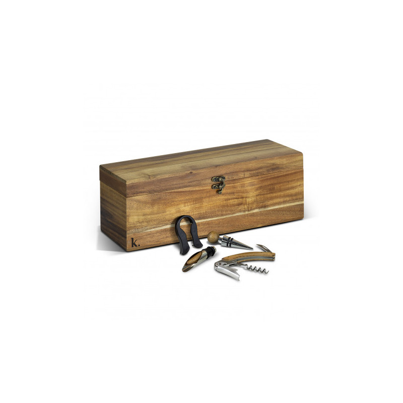 Stunning eight-piece cocktail gift set made using natural acacia wood and food-grade stainless steel. The set includes an ice scoop, strainer, shot measure, corkscrew, bottle opener, mixing spoon, muddler, and a stainless steel shaker. This sophisticated gift set is presented in a natural gift box with a Keepsake branded sleeve.