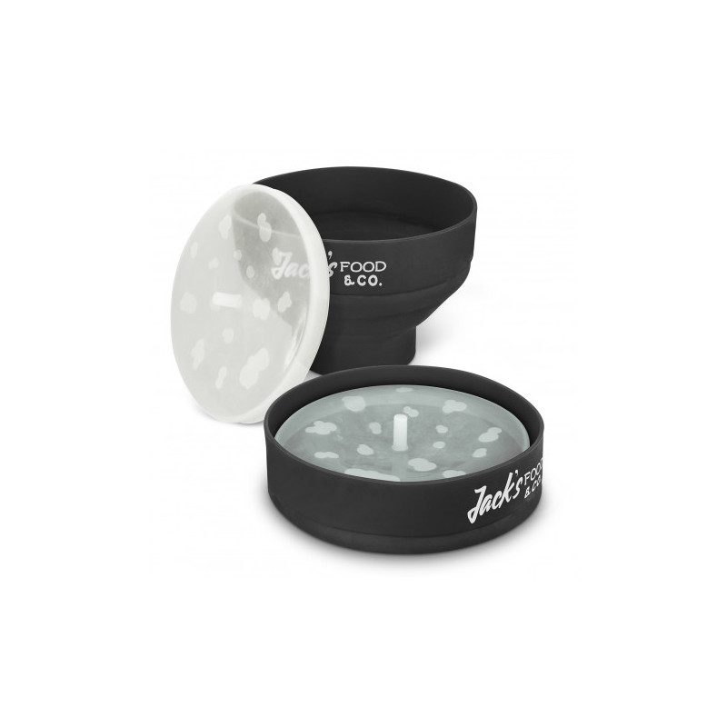 Food / storage container with locking lid. Steam release lid vent. Separate internal tray and eating utensils (spoon, fork and knife in 1). Suitable for reheating food in microwave, not cooking. For logo longevity hand washing is recommended. Eco Credentials: Reusable, printed using reusable energy.